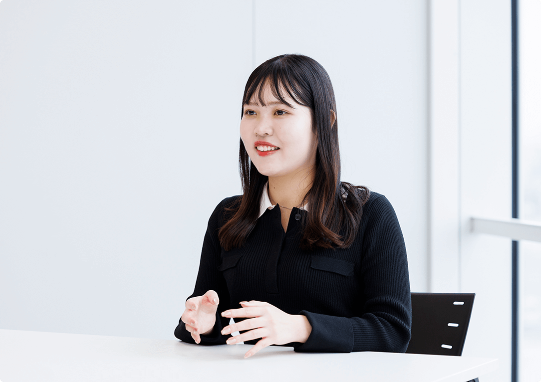 それから学生時代に英語を勉強していたので、「その経験を活かしたい」と考えていました。就職活動では、英語力を活かせる企業という視点で探していて、実際に今、輸入業務でも使う機会があります。流暢に話せるわけではないのですが、学んだことを仕事に活かせているのは嬉しいですね。入社前には先輩との座談会もあり、リラックスした雰囲気で、人事の方との距離感もちょうどよく感じました。だから、入社前後のギャップはほとんどなかったです。想像していた通り、それ以上に働きやすい会社でした。